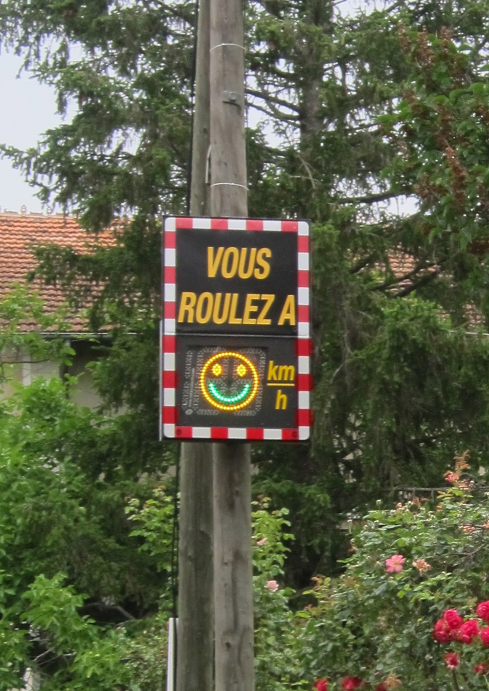 Why add a smile or frown face to an automatic vehicle speed sensor on the edge of town? The flashing numbers indicating that one was speeding were not working and are easily ignored. But adding emotion to the experience suddenly changes the equation. Now one quickly senses that they their actions are creating an emotional response (even if it is from a machine).