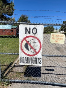 Ubiquitous activities form habits. Some daily acts are not as safe or efficient was one imagines. UPS encourages its drivers to avoid left-turns. A sign I encountered (above image*) requested vehicles turn-off their headlights at night. Standing still rather than fleeing is a better defense against certain predators. All of these might feel counter-intuitive.