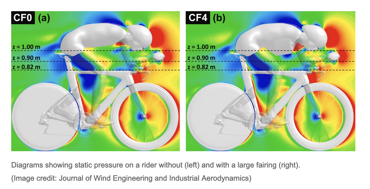 Adding a water bottle under the front of a cyclist’s jersey made them more aerodynamic. For years, conventional wisdom assumed the frontal area benefited from a more streamlined presence to achieve higher speeds. However, employing a water bottle acted like a fairing, increasing the cyclist’s potential average speed.