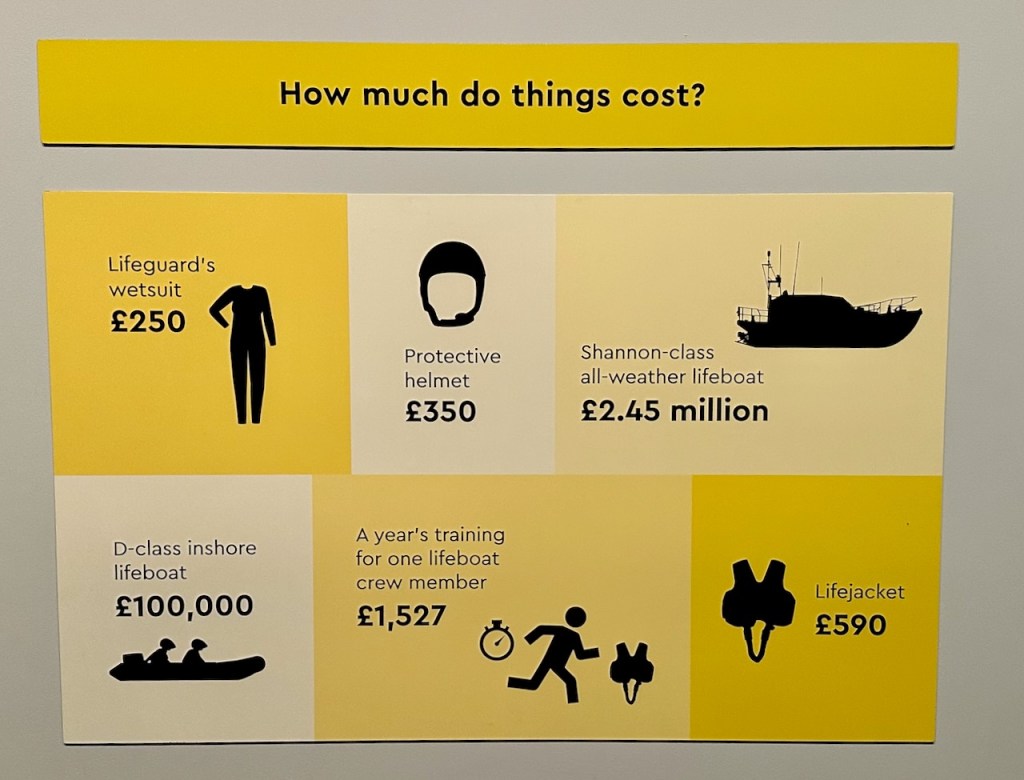 The Women of the RNLI Exhibit provides depth and dimension to the work of the Royal National Lifeboat Institution (RNLI) in the United Kingdom. Throughout the exhibit, the impact of the RNLI’s work is highlighted, especially the fact that the institution receives no government support and relies on philanthropy to fund its operations. Making the cost of operations visible is challenging, but when done well, it educates, engages, and calls us to action.