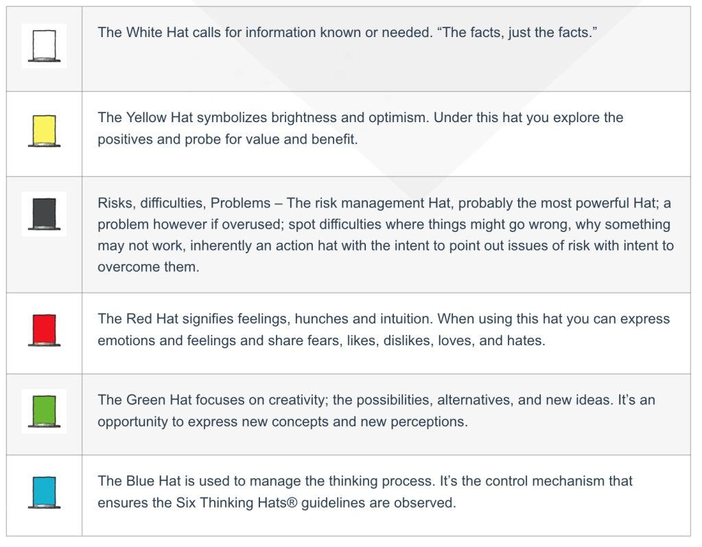 When we cannot glimpse the landscape ahead from a superior vantage point, it creates feelings of uncertainty. The recent US Presidential election, which initiated a leadership change, means many social sector organizations will face an altered landscape to fulfill their mission. A complete rewrite of a strategic plan is perhaps too much work or inappropriate at this juncture. Perhaps a scenario panning session might offer a productive output. Several enterprises used scenario planning during the pandemic when the rules were unclear, and long-term viability remained obscure. One of my favorite models is the Six Thinking Hats from Edward de Bono. I appreciate that only some ‘hats’ (mindset) will resonate with our key attributes, but completing the process delivers a holistic experience. Generative conversations can replace fear and unknowing with alignment and increased clarity.
