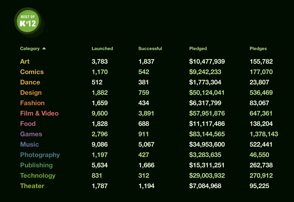 Kickstarter just released a report on the projects launched and funded in 2012.