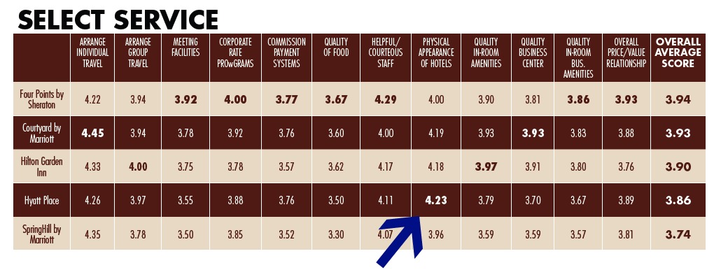 The Business Traveler’s News released its 2011 ranking of major US hotels. In reviewing the report, it is interesting to see that curb appeal does not always equate to the highest overall ranking. Hyatt Place leads the way on physical appearance but finishes fourth in the overall ratings. It provides a reminder that some of the best work is being done by those who built their enterprises from the inside out. If there is a clarity of purpose then the exterior is a reflection (and result) of the core.