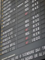 A European train station in action is a marvelous example of efficiency. There is an endless swarm of activity. Arrivals and departures being coordinated by timetables. Large boards announce the pending schedules. The arrival of the Eurostar from Napoli to Roma becomes the departing train for Milano. Within 30 minutes the passengers have disembarked and the outbound passengers loaded and departed.