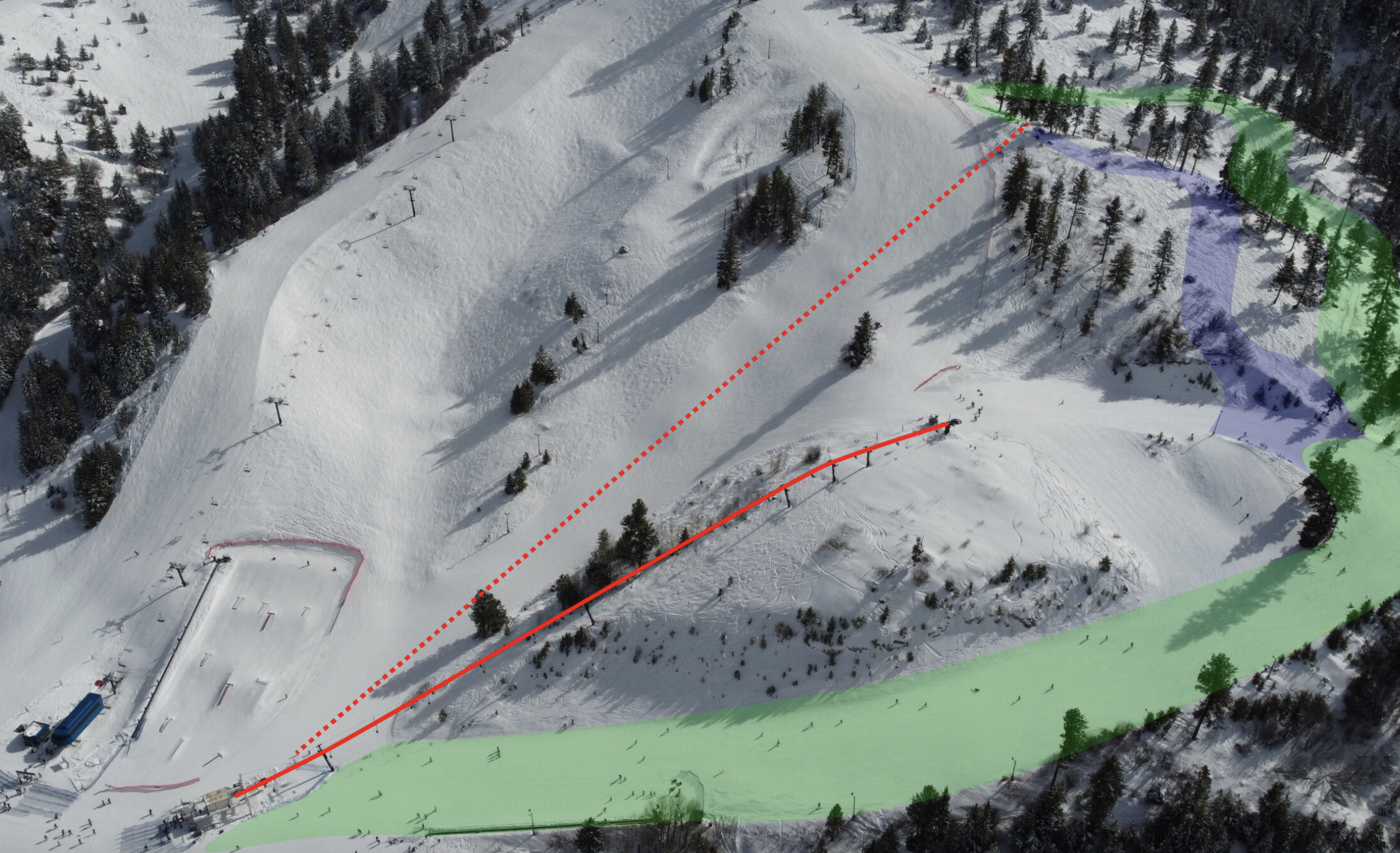Bogus Basin Ski Area- Proposed new lift dotted line. The existing lift represented as solid line