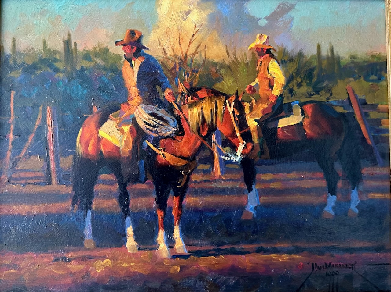 Dan Mieduch painted the above picture titled, ‘O.K., Let ‘Em Go.’ I look at it on occasion and wonder about the narrative. Did a herd of cattle or horses escape the cowboys at the end of the day? Was the stock turned out from the corral for a night to graze on green grass and drink from cool rivers? Was there a confrontation, and the adversary retreated?
