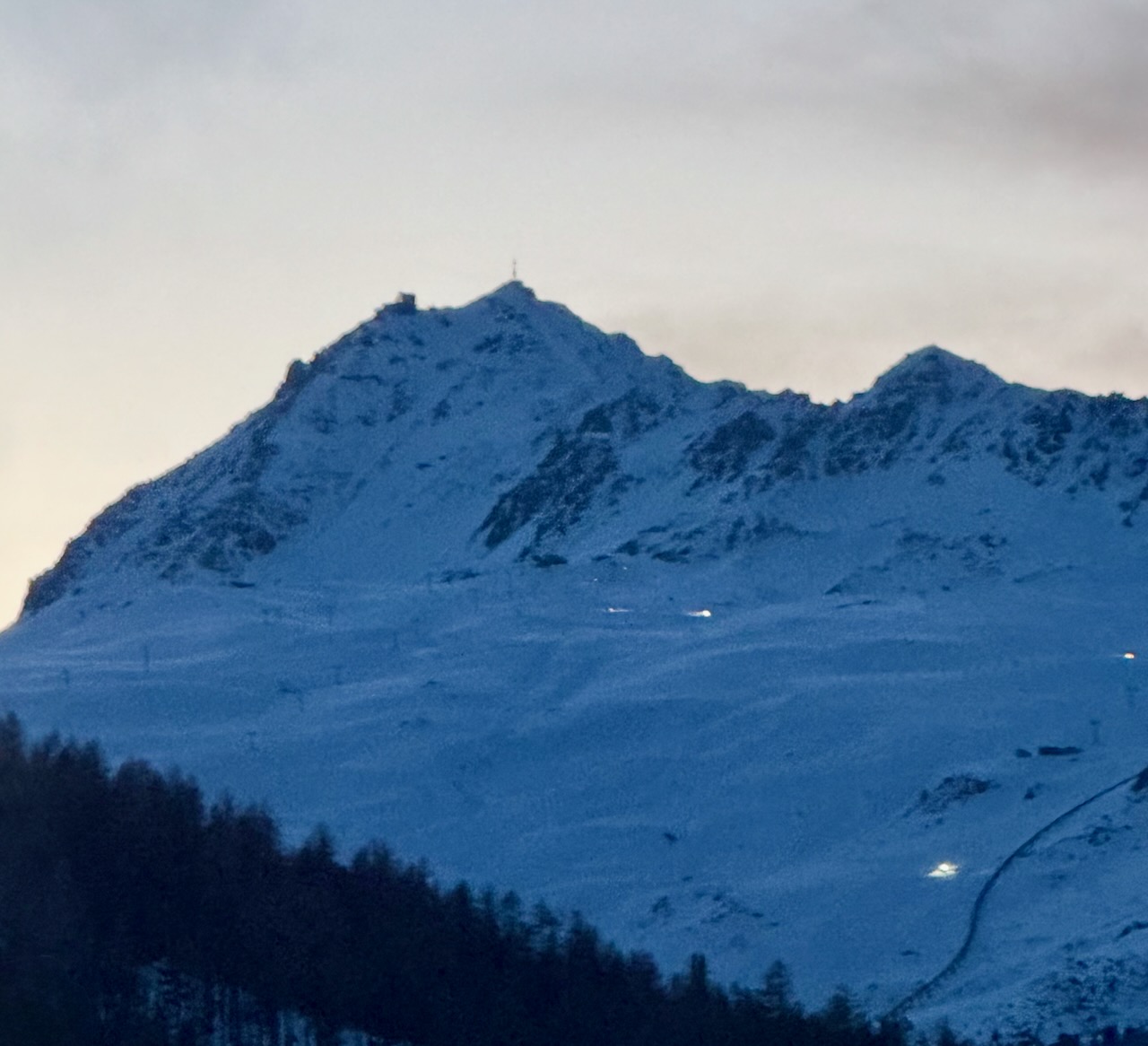 Grooming at larger ski resorts typically takes place in the evening. With the addition of halligen lights, grooming cats illuminate the night sky. Spend a few moments, and you will see their work in progress. Even when the mountain’s scale is hard to comprehend, knowing their overnight labor is tomorrow’s joyous adventure is rewarding.