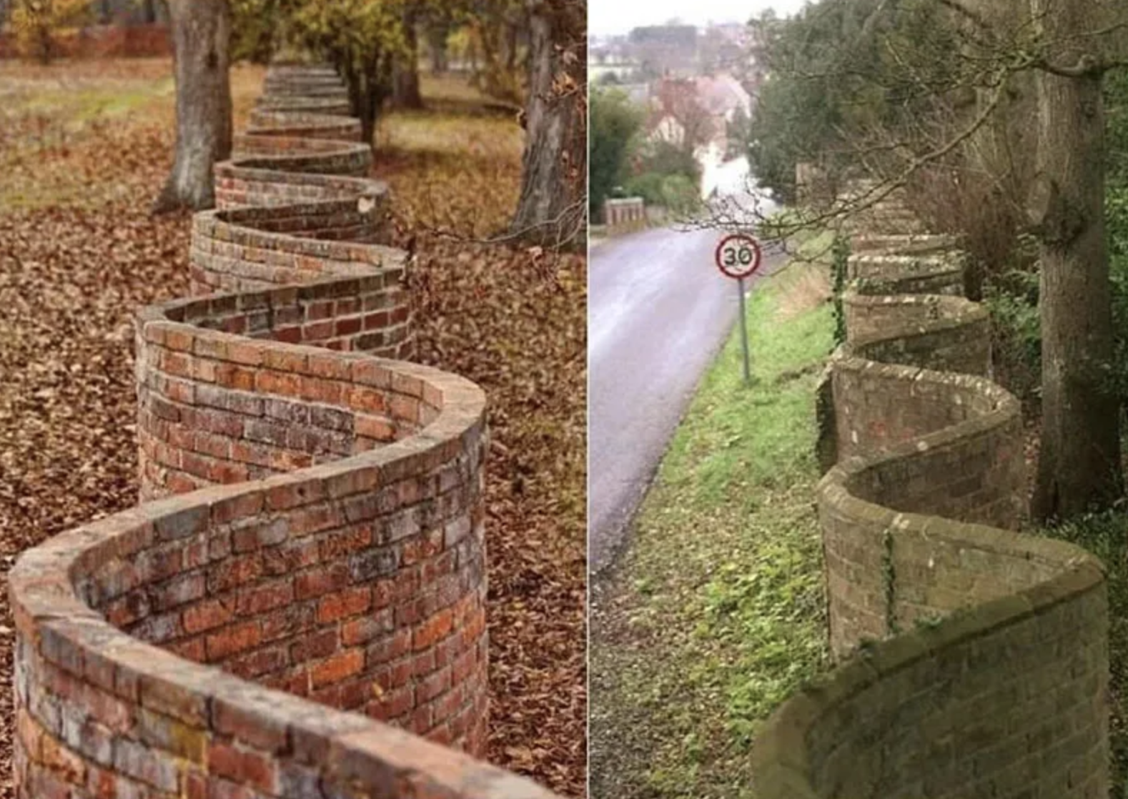 A brick wall built in the shape of a wave (arch) can support itself with a single layer of bricks. A straight wall needs two or more layers of bricks to remain structurally sound. The wave technique was superior for employing fewer bricks to build a wall that connected the same points as a straight-line brick wall.